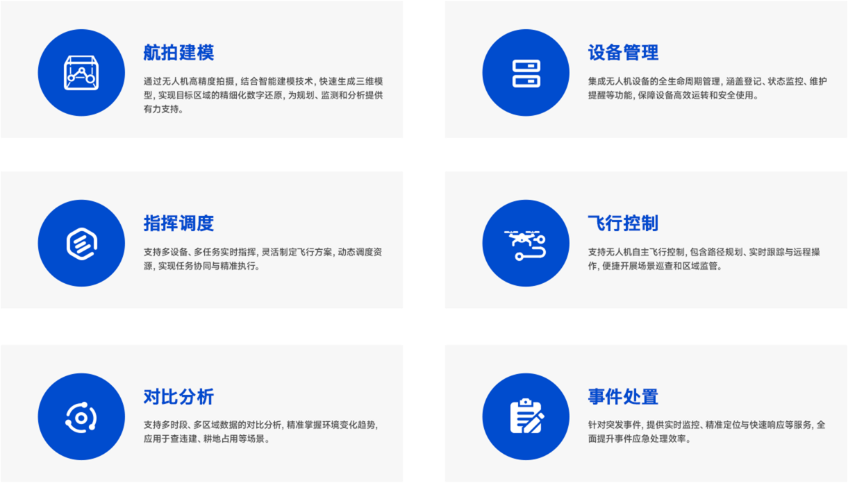 赛达科技无人机管理平台以先进技术为依托,融合无人机的多项能力,致力于为行业用户提供全面、高效的无人机管理与应用解决方案。平台功能涵盖航拍建模、设备接入、指挥调度、飞行控制、对比分析及事件处置,支持多场景应用,全面提升无人机的运营与管理效率。